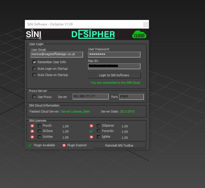 My company bought a Full License for me to use. I received an email saying that the new license was allocated to my email, I can see it in my User Dashboard, but every time I try to Log in into Desipher (v1.09) inside 3D Max 16, I am being connected to the Free License where I can just see ForenSic License. I tried "Reseting MAC1", closing Desipher, closing 3D Max and connecting back again, but still same issue.
